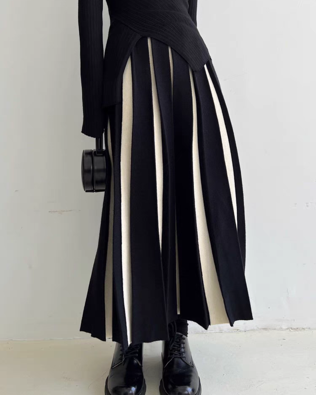 程よく広がるAラインシルエットに、バイカラーのデザインがアクセント