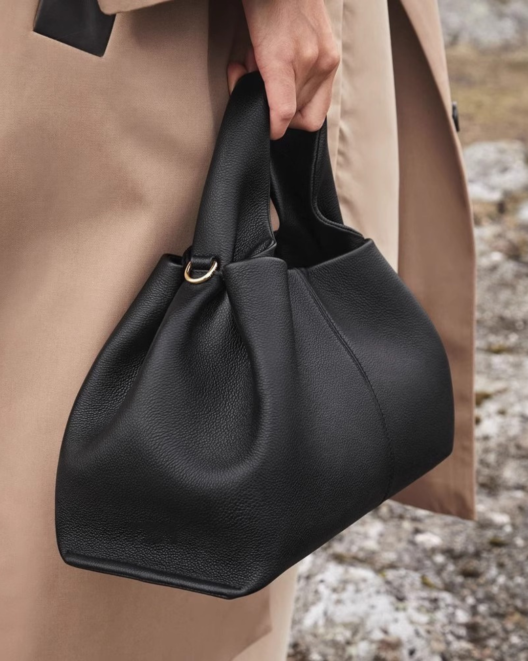 柔らかなシボ感素材と丸みのあるシルエットで、コーデを上品に仕上げるハンドバッグ。