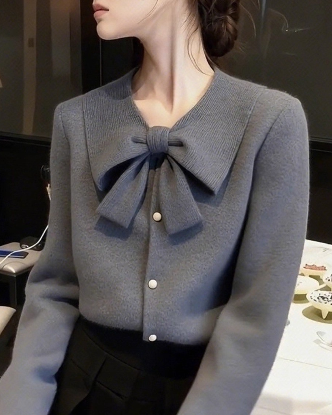 上品さもしっかりある大人のためのリボンニット。