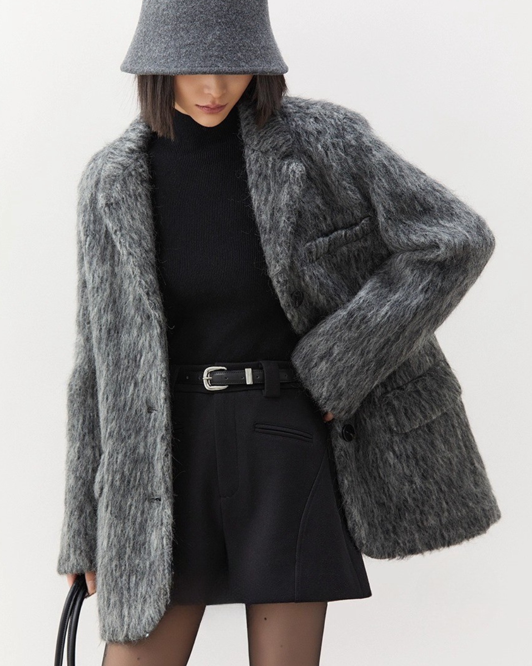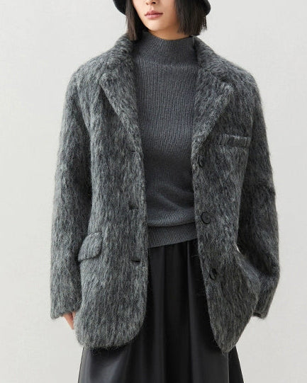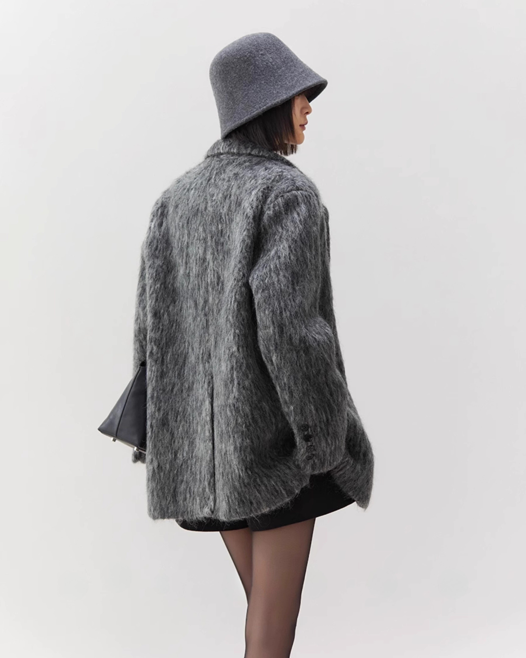 毛足の長いシャギータッチ素材を贅沢に使用した、冬の主役級ジャケット。