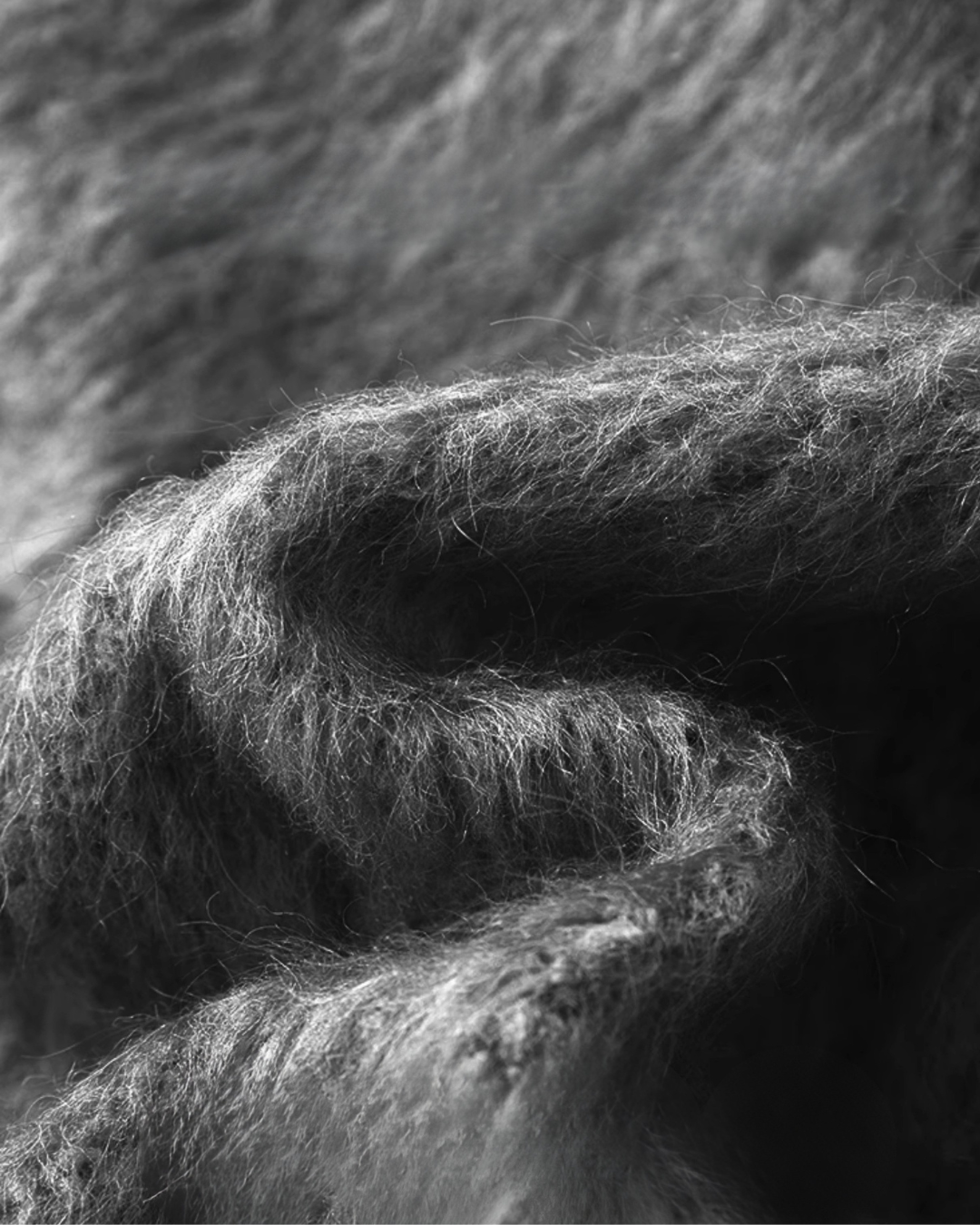 ほんのり光を含んだようなグレーのニュアンスと、オーバーすぎない絶妙なルーズシルエットが、